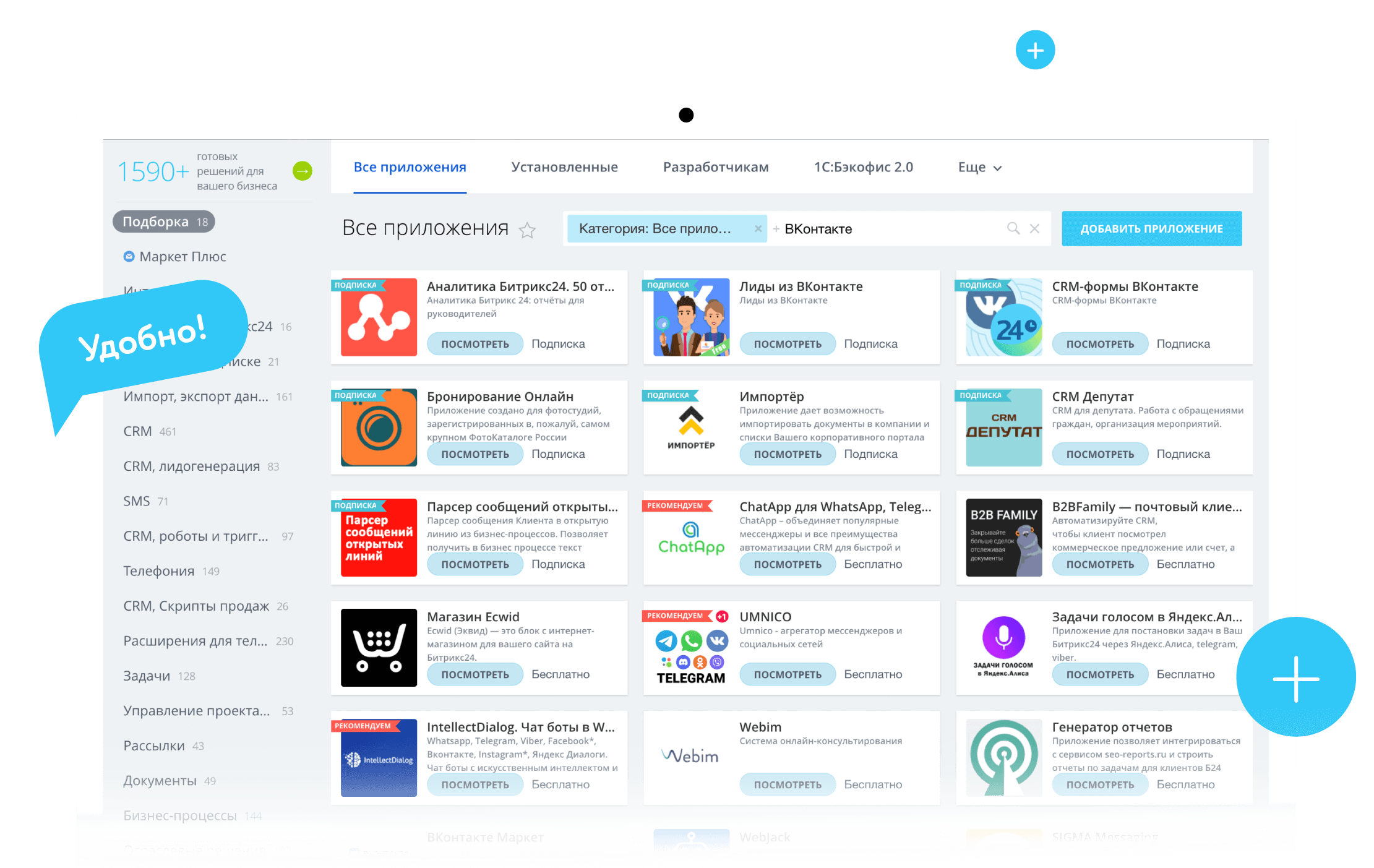 Дополнительные приложения от наших партнеров помогут вам отвечать клиентам 24/7 и удивлять их уровнем сервиса.