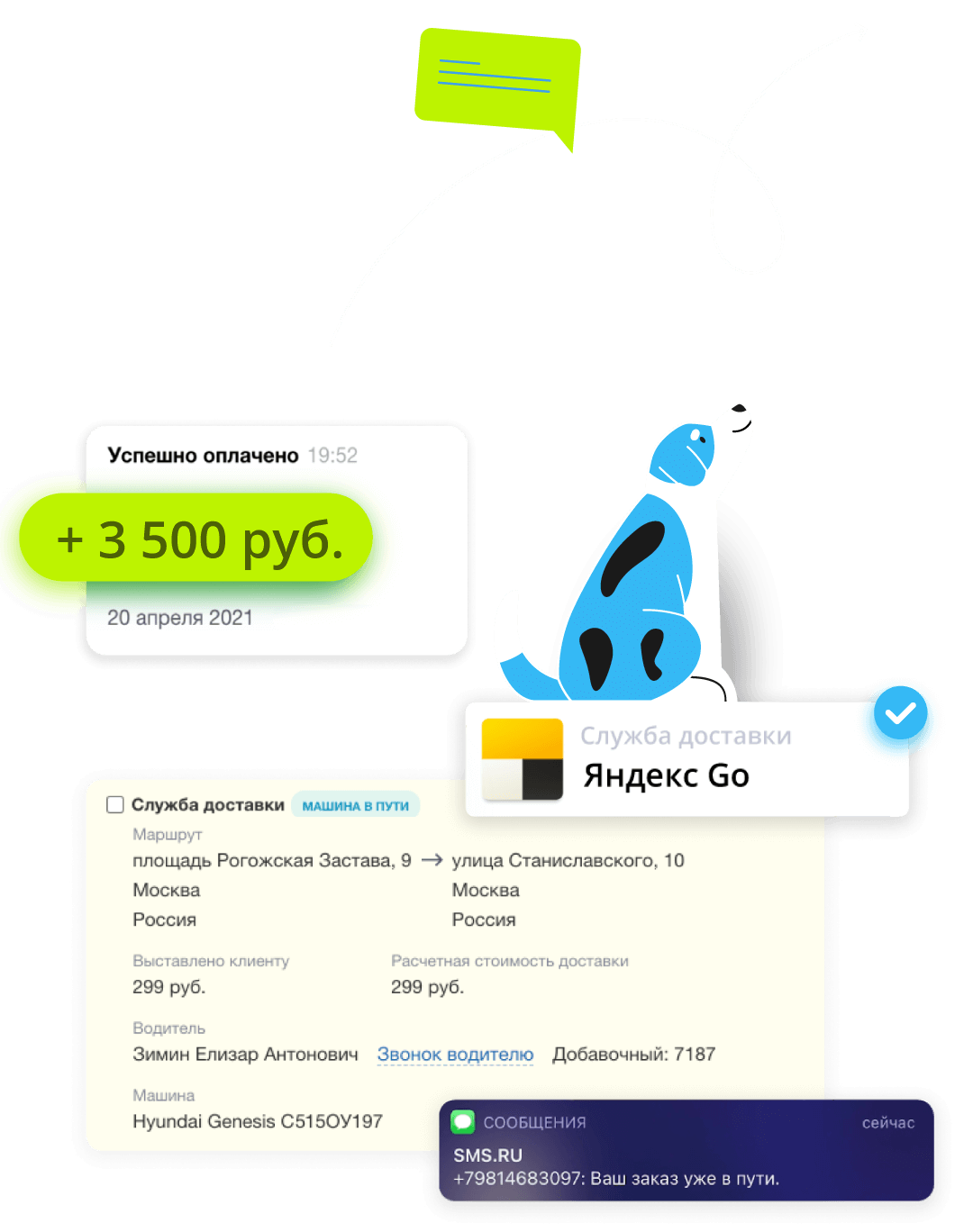 Организуйте доставку товаров прямо из CRM. Вы можете отслеживать статус доставки, связаться с водителем.