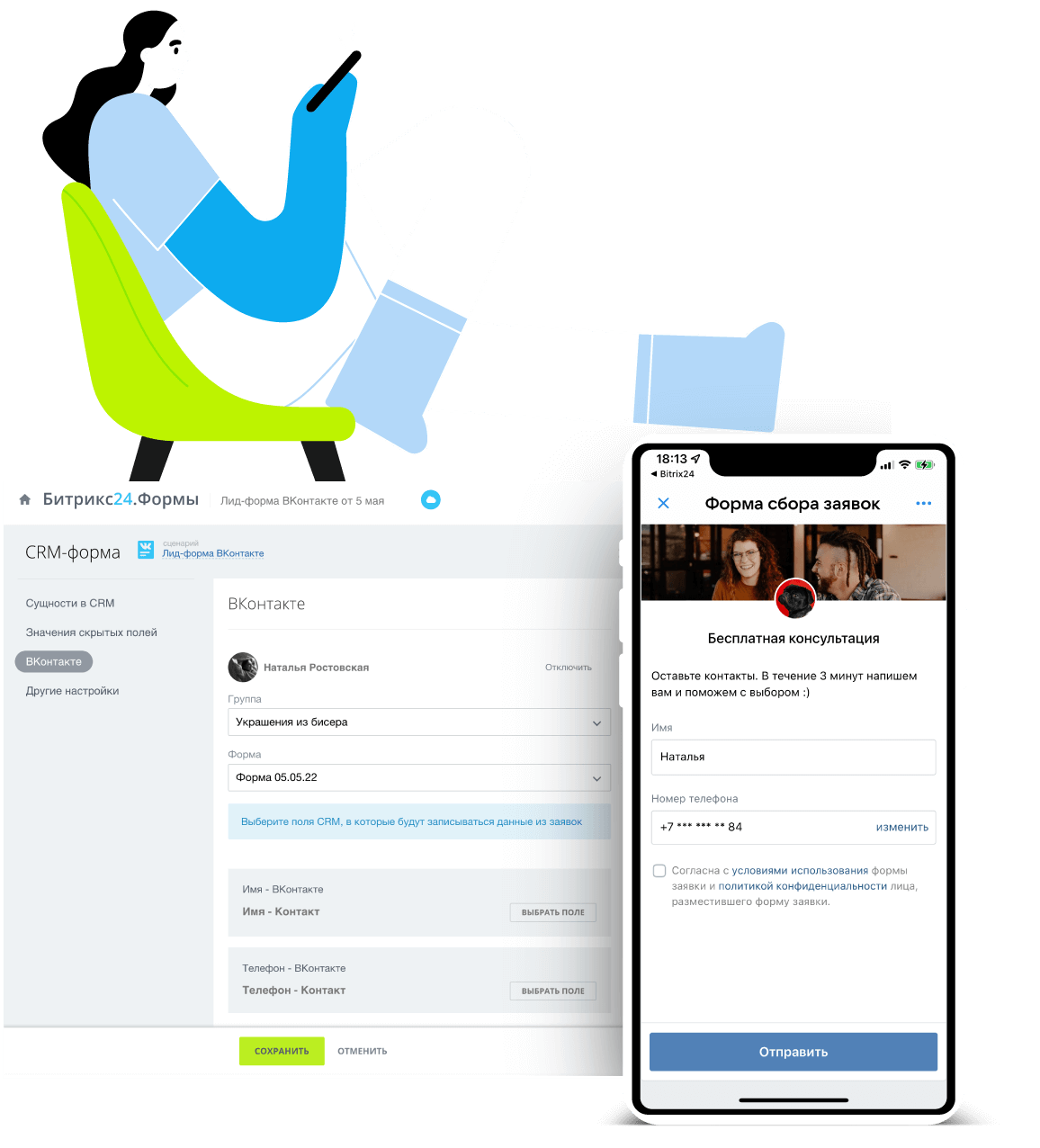 Вам в Битрикс24 придет уведомление о заказе, его детали и ссылка на просмотр. А ваш ответ — клиенту в личные сообщения ВКонтакте.
